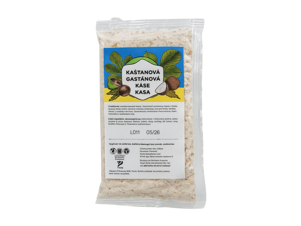 Zloženie: gaštanová kaša, demerara, lyofilizované ovocie, hrozienka, chia semienka
